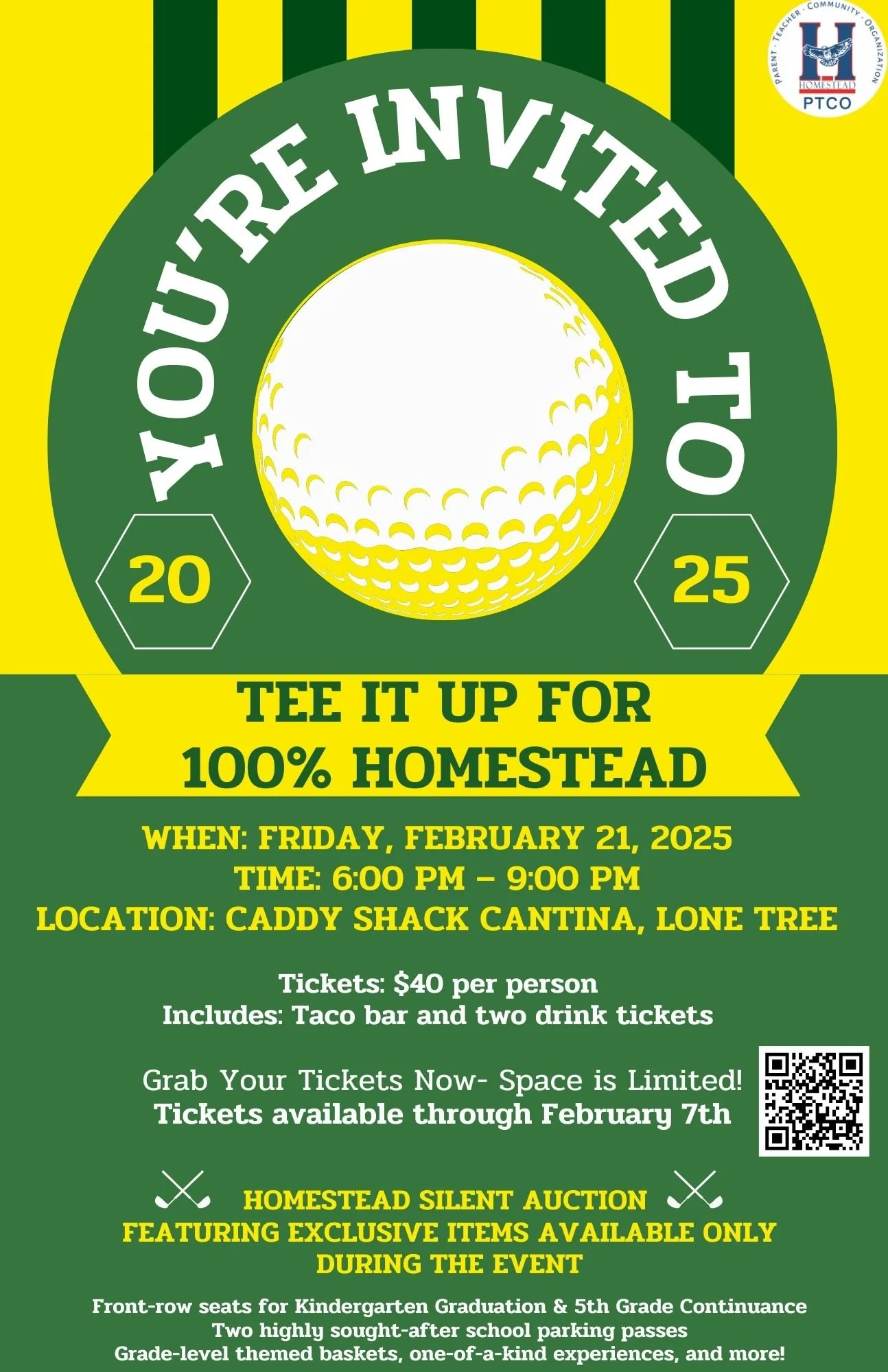 Help us tee up the start of 100% Homestead’s Spring Fundraiser with an evening of drinks, tasty bites, a chance to bid on exciting items ONLY available at our Silent Auction and little friendly competition on the golf simulators!